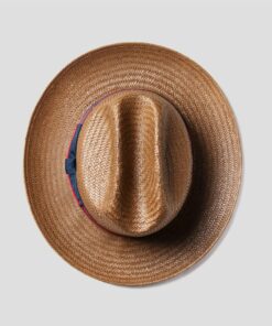 This Western hat is made by hand from high-quality Panama straw in a tradition-consciously authentic shape. It wins over the wearer qualitatively with summery lightness and the flexible, slightly airy workmanship. The visual arguments of the straw hat are the subtle heathered design and the colourful patterned trim band made of fabric with side bow and brand pin, which is shown off to excellent effect on it.