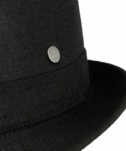 This narrow-brimmed hat is made of a warm new wool blend, as well as a functional, water-repellent Teflon coating.With its classic look, it can be worn to all events and special occasions. With a lightweight lining and fabric lining band.