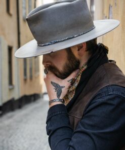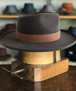 “Handmade from 100% wool felt in the United States, this vintage and unique fedora hat is crafted in an environmentally friendly environment. Each hat is manually processed, aged, fire baked, and painted, resulting in a one-of-a-kind piece. The high-quality Australian wool is breathable and natural, while the sweatband features a non-adjustable synthetic belt with an engraved logo. The package includes two hat paddings to reduce the circumference if needed. Store this hat flat in the provided box to avoid dust and warping. Free shipping is included. This wool fedora hat is perfect for outdoor activities and offers great comfort all day long.”