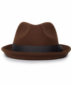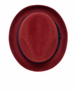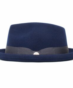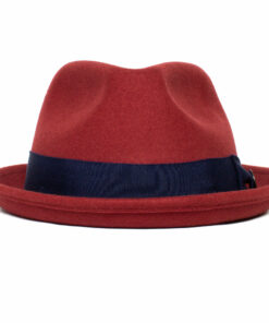Our Classic Pork Pie Fedora Hat, adorned with a solid color bow hat band for an added touch of sophistication.