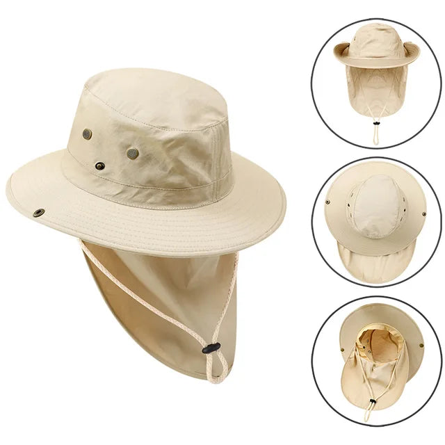 CAMOLAND Women Summer Sun Hats With Neck Flap Outdoor UV Protection Fishing Hat For Men Bucket Cap Wide Brim Hiking Hats