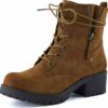 - 𝗗𝘂𝗿𝗮𝗯𝗹𝗲 𝗮𝗻𝗱 𝗖𝗼𝗺𝗳𝗼𝗿𝘁𝗮𝗯𝗹𝗲: Crafted with a sturdy lug sole and block heel, these ankle boots provide excellent grip and stability for all-day wear.