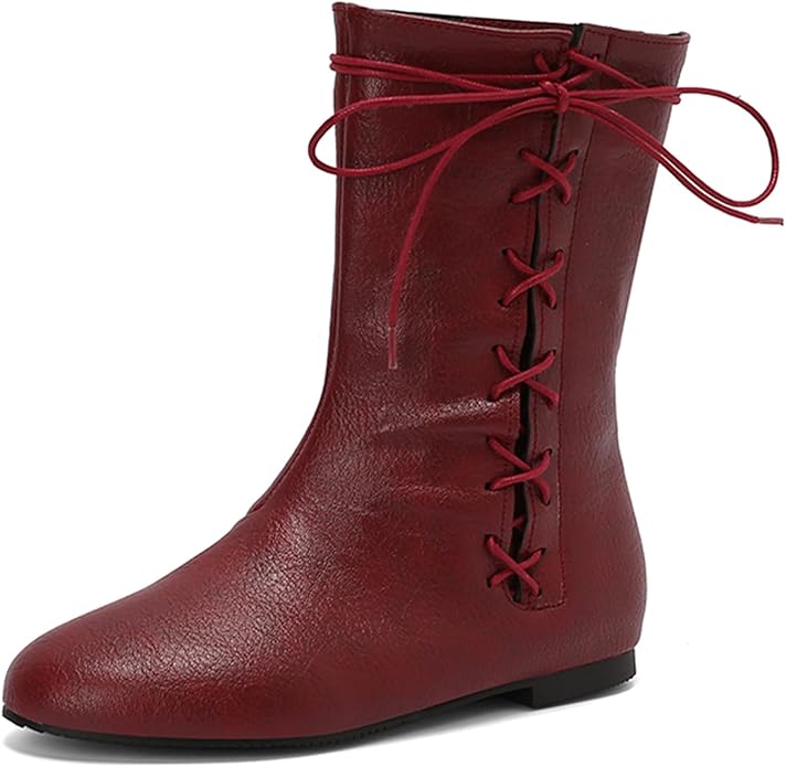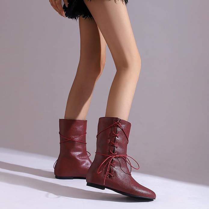 - Lace Up Pirate Boots: Considering different wearing preferences, some people like to wrap the laces around the ankle twice before tying them when wearing retro medieval ankle boots. Our laces are left a bit longer, so if you only need regular lace-up flat ankle boots, you can trim the laces yourself.
