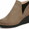 - Water-repellent Faux upper with 100% recycled lining and a closed round toe. Rubber traction outsole to help with slip resistance, 3/4 inch platform, 2 5/8 inch wedge heel.